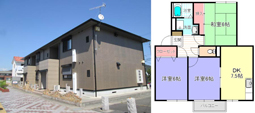 |  | 3DKアパート(赤穂市元沖町)家 賃 62,000円 共益費 1,000円 駐車1台付敷 金 なし 礼金 124,000円